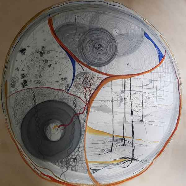 Vibra no circular o eterno retorno. O círculo usado como pradrão de repetição, em varias composições desta série, "Natureza Circular" estão presentes em muitos trabalhos da Pick. São um misto de influências, desde imagens de células embrionárias, até o intuitivo ou inconsciente sentido do infinito que o circulo denota.