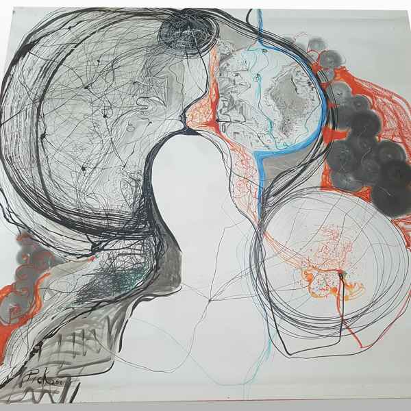 Um emaranhado de linhas que insinuam figuras e formas celulares, entrando, saindo, dançando. Tristes, felizes, quase sempre é desespero. Entre os anos 2007 e 2010, Isabel Bogoni Pick, centrou suas investigações na observação de imagens microscópicas de diferentes tipos de células, a maioria ligadas à manipulação genética, e à biotecnologia. Iniciando uma variedade de experimentações. A princípio seu interesse se baseou nas imagnes de seus proprios embrioões, já que passou pela experiencia da fertilização em vitro. Seu interesse, cresce ainda mais quando percebeu uma interação poética entre ética e estética. Artistas como Eduardo Kac, levam essa bandeira, com obras como “Alba o coelho fluorescente”. Seu trabalho foi sendo regado pelos atravessamentos da vida pessoal e das indagações, quase sempre sem resposta, entre legalidade e moralidae da manipulção genética. O emaranhado caótico de linhas que giran e se multiplicam, com o recorrente padrão do circulo, é uma gestualidade que transfere a inquietação e a desordem que contrapõem o conceito objetivo da biociencia, que busca controlar e manipular a vida.