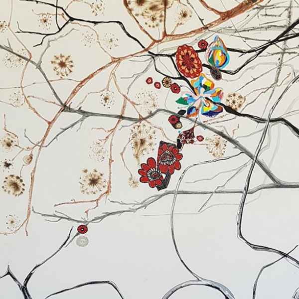 Um emaranhado de linhas que insinuam figuras e formas celulares, entrando, saindo, dançando. Tristes, felizes, quase sempre é desespero. Entre os anos 2007 e 2010, Isabel Bogoni centrou suas investigações na observação de imagens microscópicas de diferentes tipos de células, a maioria ligadas à manipulação genética, e à biotecnologia. Iniciando uma variedade de experimentações, a princípio buscando pontos de contato com a arte contemporânea, seu interesse cresceu ainda mais quando percebeu uma interação poética entre ética e estética. Artistas como Eduardo Kac, levam essa bandeira, com obras como “Alba o coelho fluorescente”. Na ficção, autores como Aldous Huxley em seu livro “Admirável mundo novo”, são vistos como presságios daquilo que não se pode permitir na prática artificial da gênesis humana. Nesse período, o foco da artista estava em entender as formas positivas e negativas da manipulação genética, as mudanças radicais que vinham acontecendo desde os anos 70 na prática científica, e como todas as formas de vida seriam atravessadas por novas tecnologias. O iminente perigo de tentar chegar a uma “raça melhorada geneticamente” até as ameaças da inteligência artificial são inquietudes que, lançadas ao trabalho da artista, fazem refletir através das linhas os meandros da ética da manipulação genética contemporânea. Linhas que pensam e exploram uma imagem abstrata e se insinuam com a figuração, que deixa ver um trânsito enredado de formas.